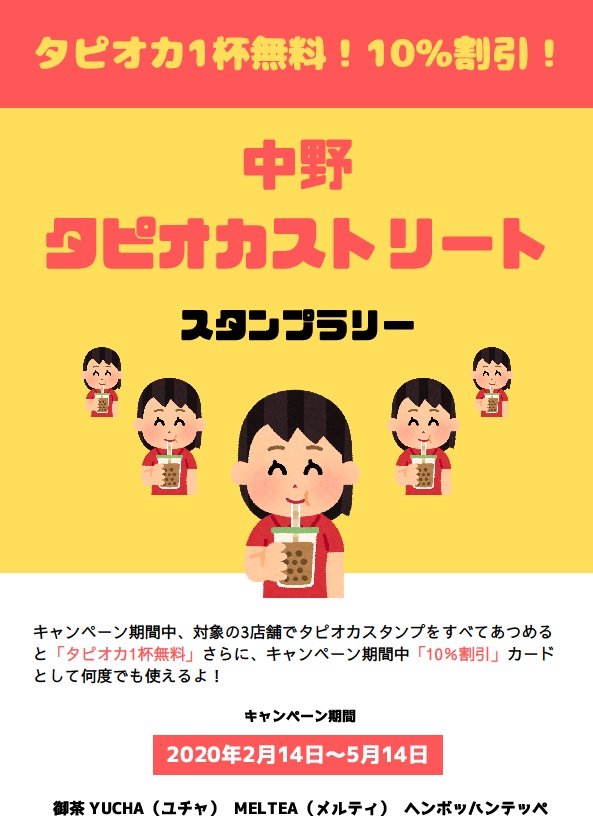 中野ブロードウェイ地下にある「3軒のタピオカショップ」の合同イベントです!