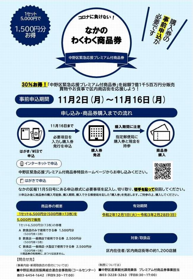 中野区在住の方に朗報です!今年も「なかのわくわく商品券」が販売されます。