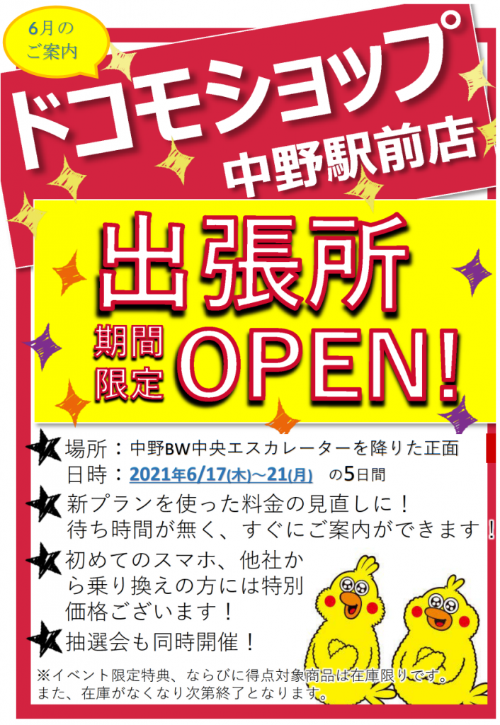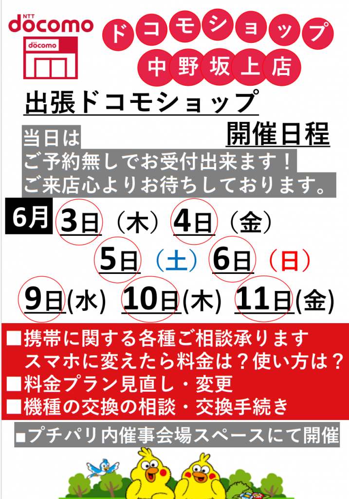 6月の「ドコモショップ出張所」は下記の通りです。