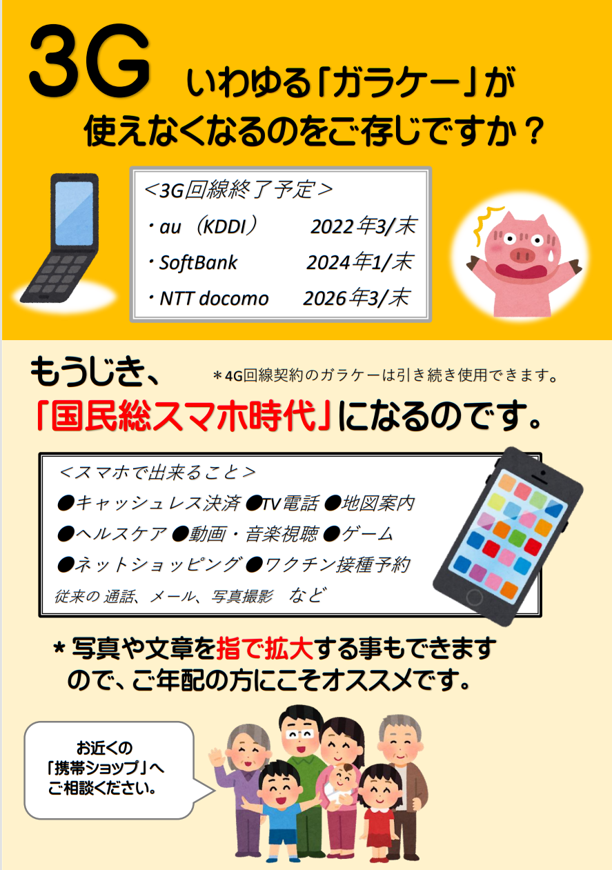 一日も早く4G、5Gの「スマホ」に乗り換えましょう。